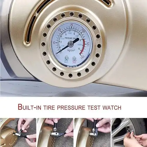 A compact and powerful car vacuum that also functions as a tire inflator, LED flashlight, and digital pressure gauge. Ideal for quick cleanups, emergency inflation, and nighttime roadside use—perfect for every car owner.