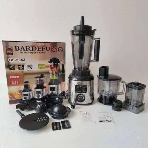 The BARDEFU 8-in-1 blender Grinder set is a versatile kitchen appliance for various food preparation tasks, including juicing, blending, grinding, chopping, slicing, mixing, and crushing ice. It comes with multiple attachments, such as a large blender jar, smaller cups for dry grinding, a slicing/chopping blade, and a dough maker, making it suitable for preparing smoothies, soups, sauces, fresh juices, and even making pastes from ingredients like tomatoes.