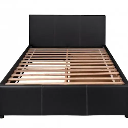 Transform your bedroom into looking classy and homely with this black 5(length across) x 7(length from headboard to footboard) feet size bed with well sized side drawers and black well finished leather detail. Mattress is not included.