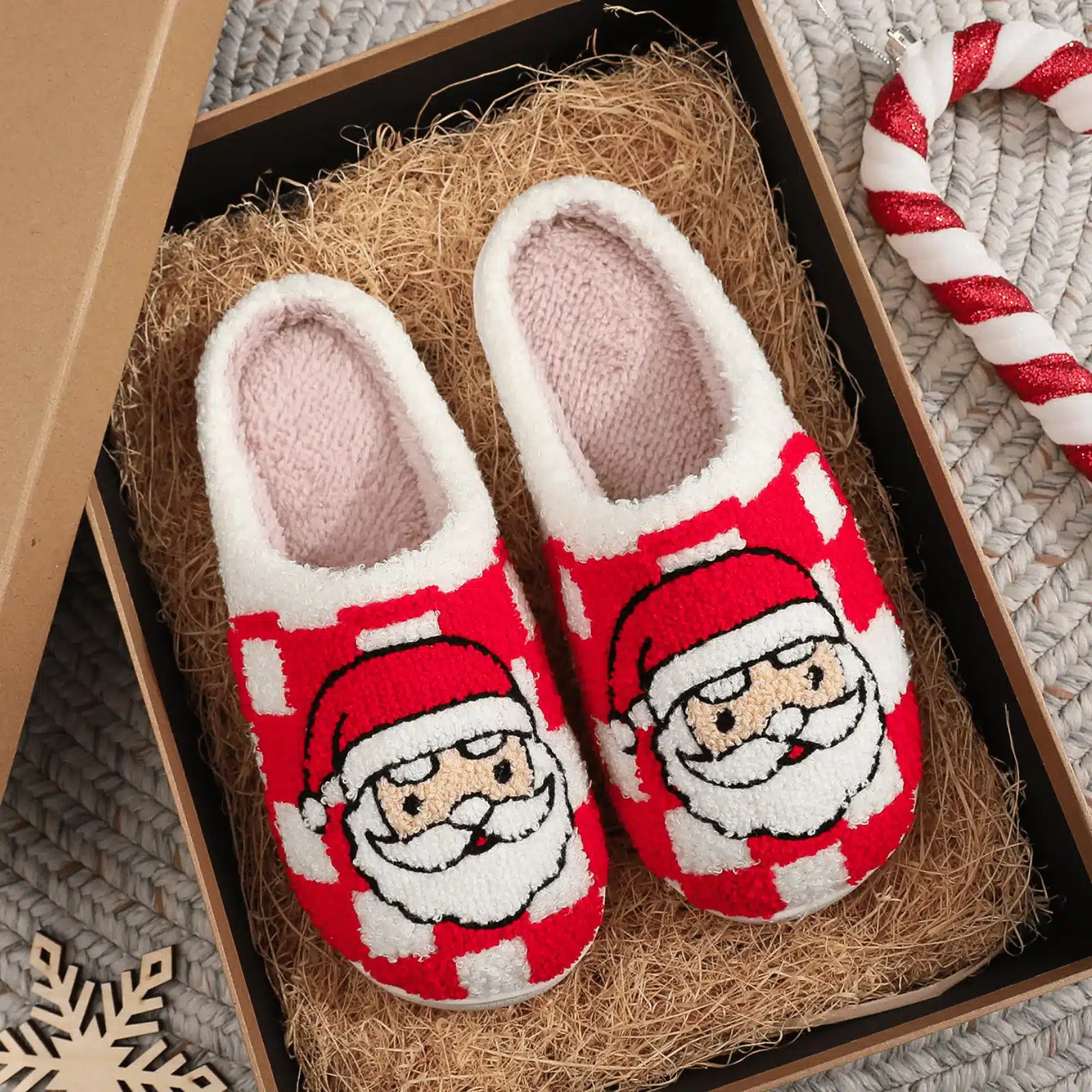 - Festive Christmas Design: Adorable reindeer and Santa Claus details bring a whimsical holiday spirit to these cozy slippers for women and men.