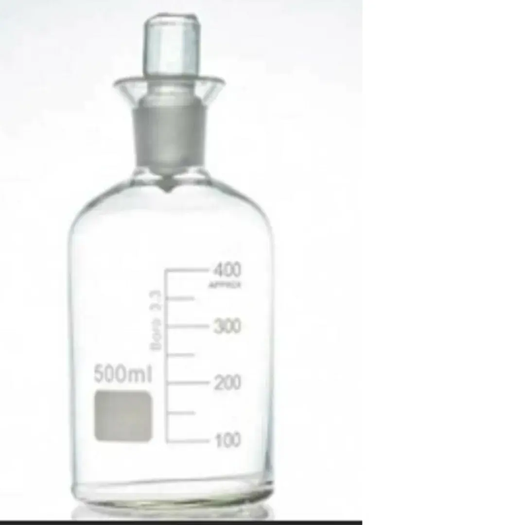 A specialized glass bottle used in environmental and water quality testing to measure Biological Oxygen Demand (BOD). The 500ml size is standard for laboratory analysis, designed with a flared mouth and ground-glass stopper to prevent air bubbles and ensure accurate readings. Ideal for wastewater treatment plants, research labs, and environmental monitoring.