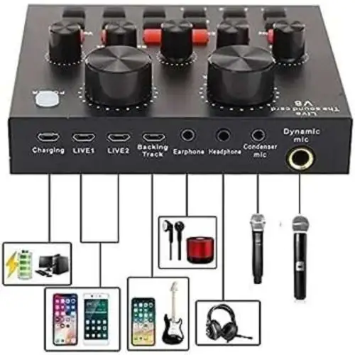 A professional-grade BM-800 condenser microphone bundle designed for content creators, musicians, and streamers. It includes a sturdy mic stand, pop filter, shock mount, and sound card, delivering clear audio with noise reduction and studio-quality sound. Ideal for podcasting, voice-overs, and home recording setups.