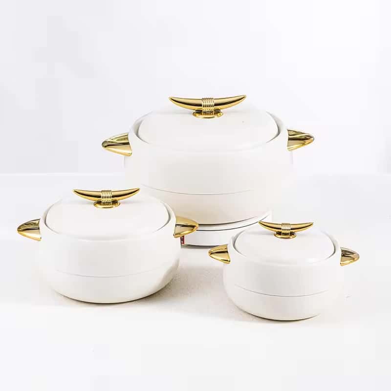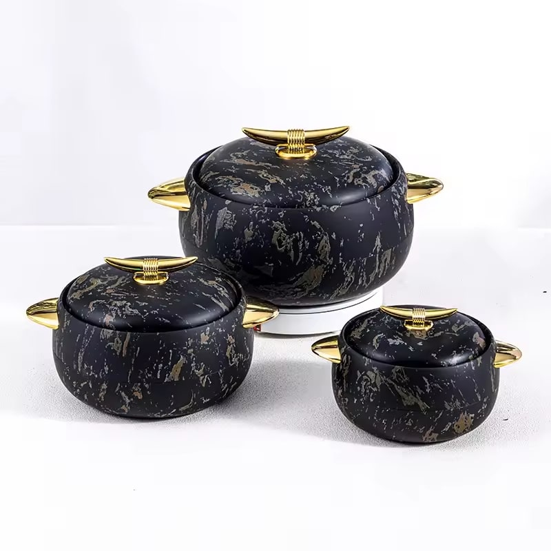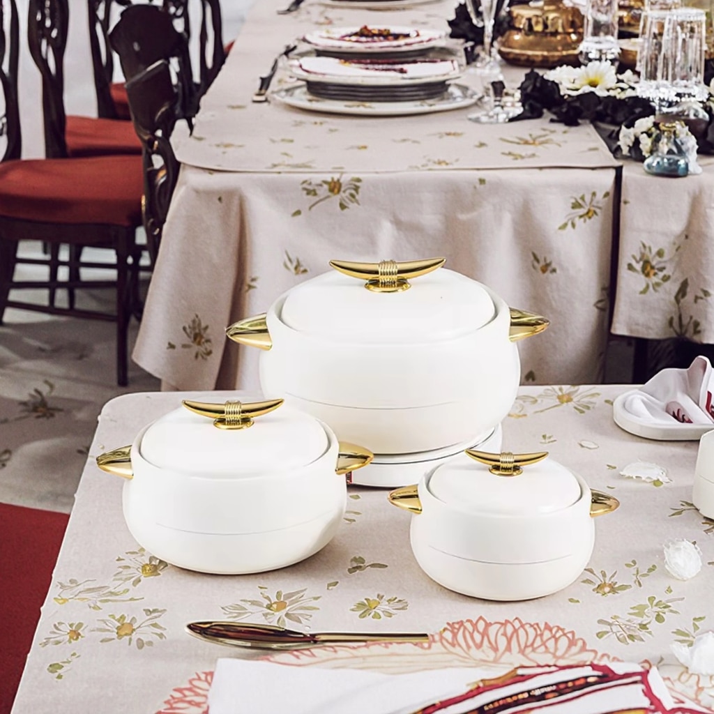 This 3-piece cooking casserole set includes insulated containers in 1L, 2L, and 3.5L sizes, designed to retain heat and preserve food quality. Each casserole comes with a matching lid, making it ideal for hot pots, meal storage, and serving dishes at gatherings or daily use. Durable and easy to carry, this set is perfect for family meals, office lunches, and parties.
