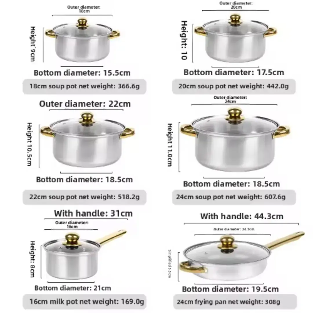 • Multipurpose cooking pots: this set includes a variety of pots and pans of different sizes (16/18/20/22/24/24cm), allowing for versatile cooking options and accommodating a variety of cooking needs.