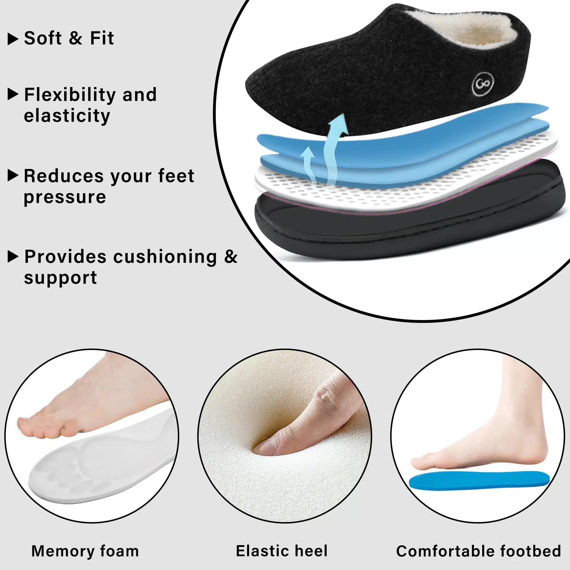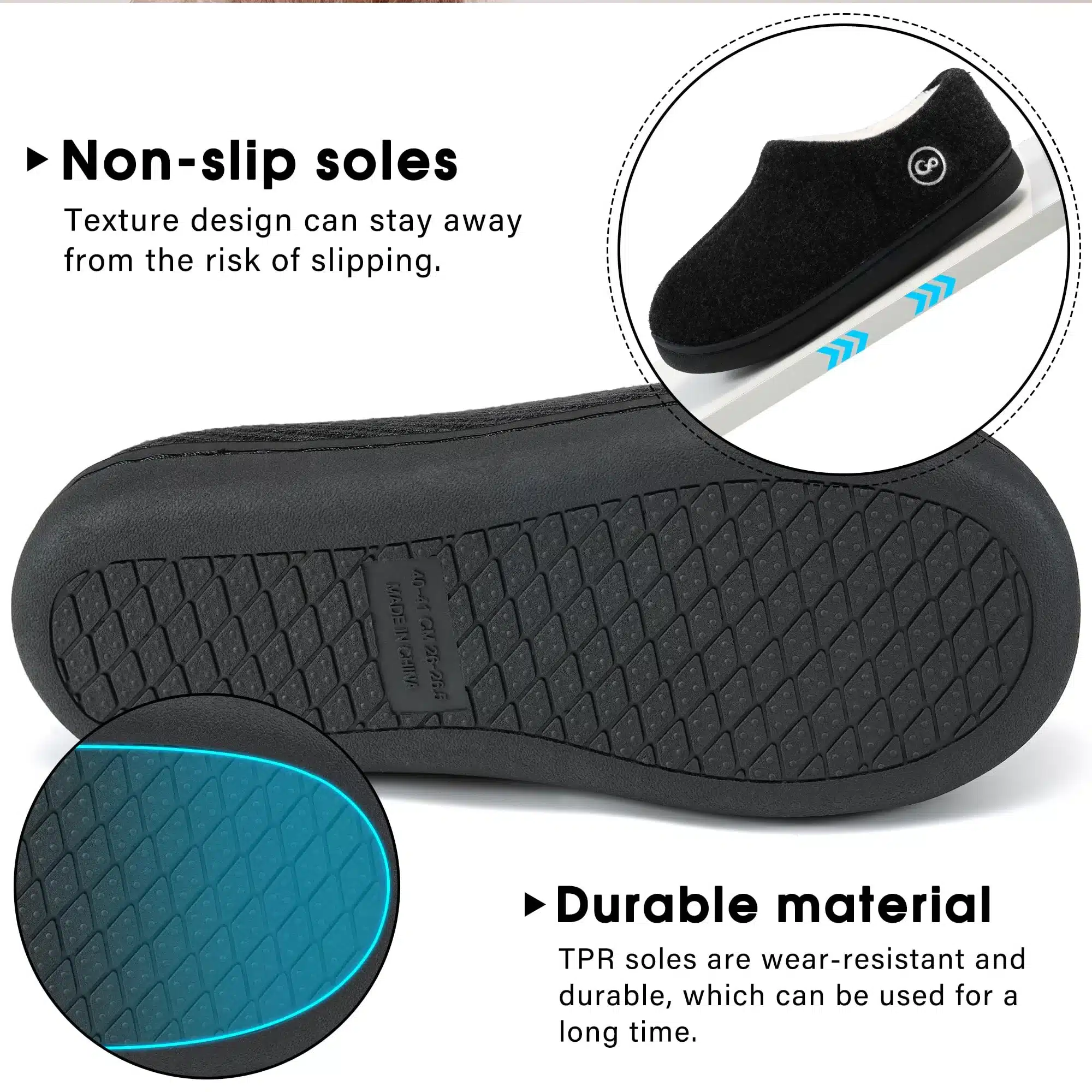 - Anti-Slip Sole: Features a durable non-slip rubber sole, providing flexibility and traction for safe indoor and outdoor use.