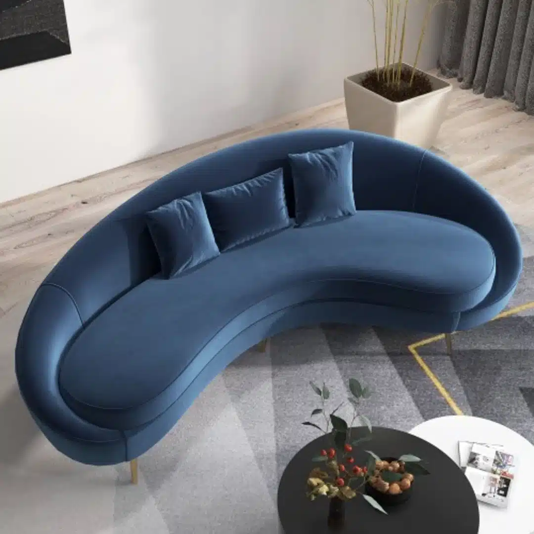 The sitting room will look more refined with the Velvet Curved Sofa, which is practical and stylish. Make home or office distinctive with such an unusual piece of furniture. It’s also available in a wide range of colours. When it comes to sofas that are both fashionable and functional, this Velvet Curved Sofa should be on your shortlist for those searching for a blend of classic and exquisite style