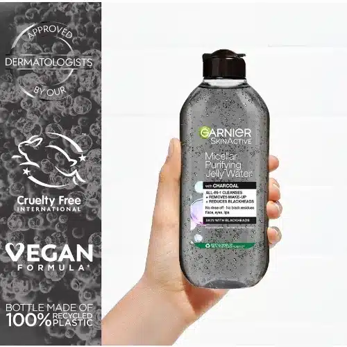 Removes makeup, reduces blackheads, cleanses skin of impurities and dirt- all in one step! Vegan formula on all sensitive skin types. Looking for an effective, daily cleanser to remove makeup and reduce blackheads? Garnier Micellar Cleansing Charcoal Jelly removes up to 100% makeup and intensely cleanses the skin.