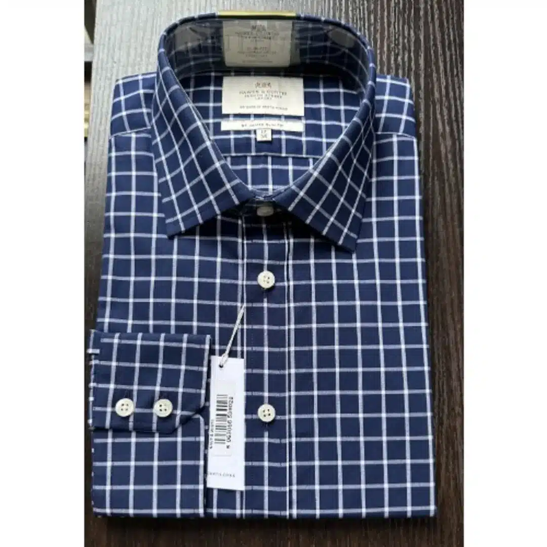 Hawes & Curtis Men’s Navy & White Grid Check Slim Fit Shirt – Single Cuff