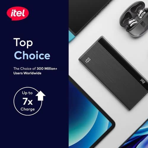 The itel PowerPulse 30000mAh Power Bank gives strong backup power for phones and small devices. It supports 22.5W fast charging through the Type C port. The large battery size keeps your devices powered through the day. It works well for travel, work, and everyday use.
