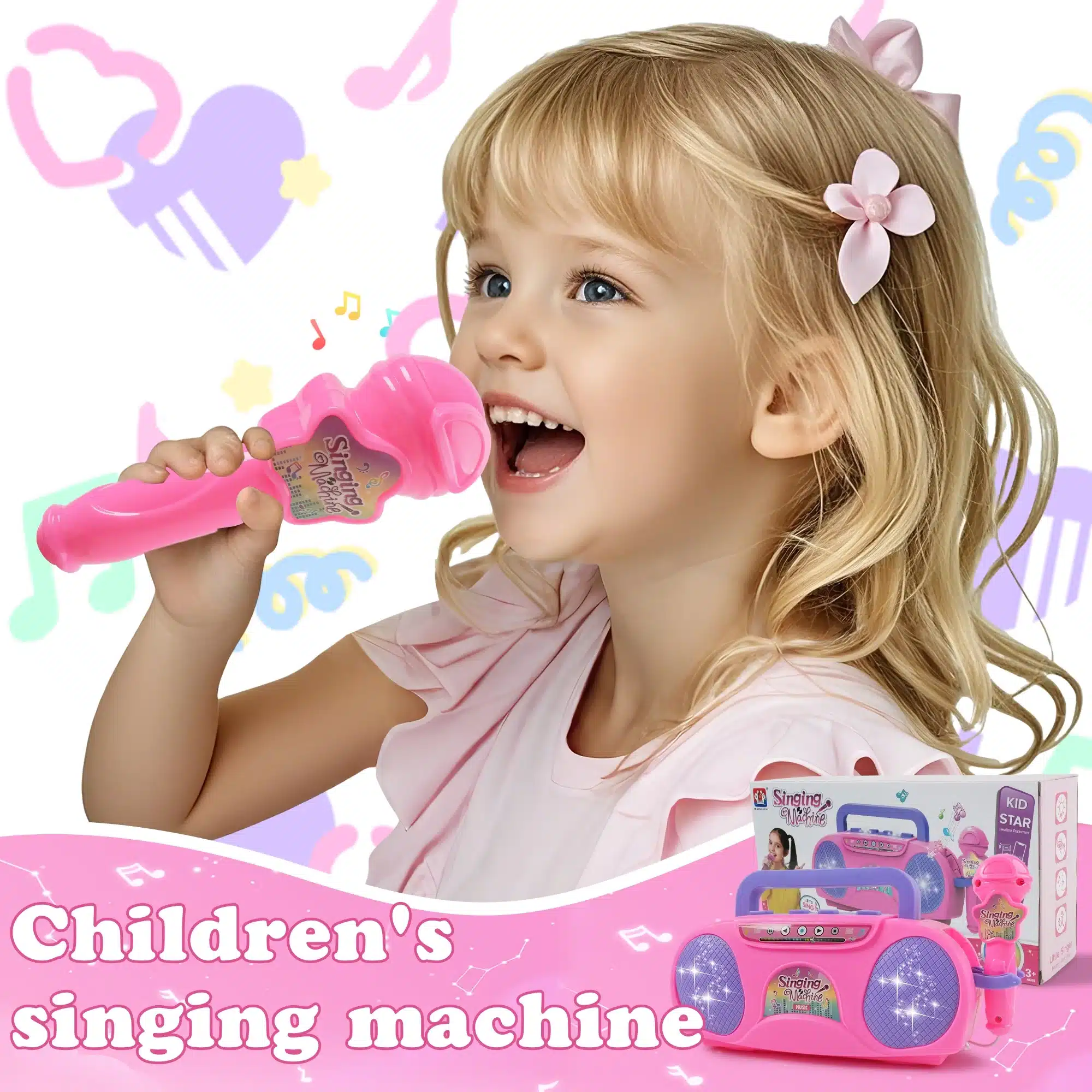 - The Kids Karaoke Machine lights up with glowing lights, creating a fun and immersive atmosphere. Its cute pink design is both charming and eye-catching, perfect for young performers.