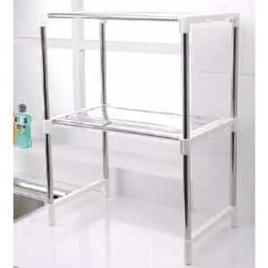 This is a stainless steel oven storage rack that has been designed to sit over kitchen appliances giving space for kitchen utensils to sit on. The width is adjustable creating extra storage space for you if necessary, the product is extremely easy to build up and comes with a manual. The product can be easily cleaned to keep it looking fresh and new all of the time, giving your kitchen an added shine, It is built to an extremely high quality and has a professional looking finish, and with its sleek design it is sure to fit into any Kitchen. This rack divided into two layers, so in the above layer, you can also place glass, plate and so on. Optimise your kitchen storage space with this storage shelf. Easy practical unit which is simple to assemble. Perfect for Microwave ovens or other kitchen appliances and is ideal for compact kitchens and frees up loads of kitchen worktop space.