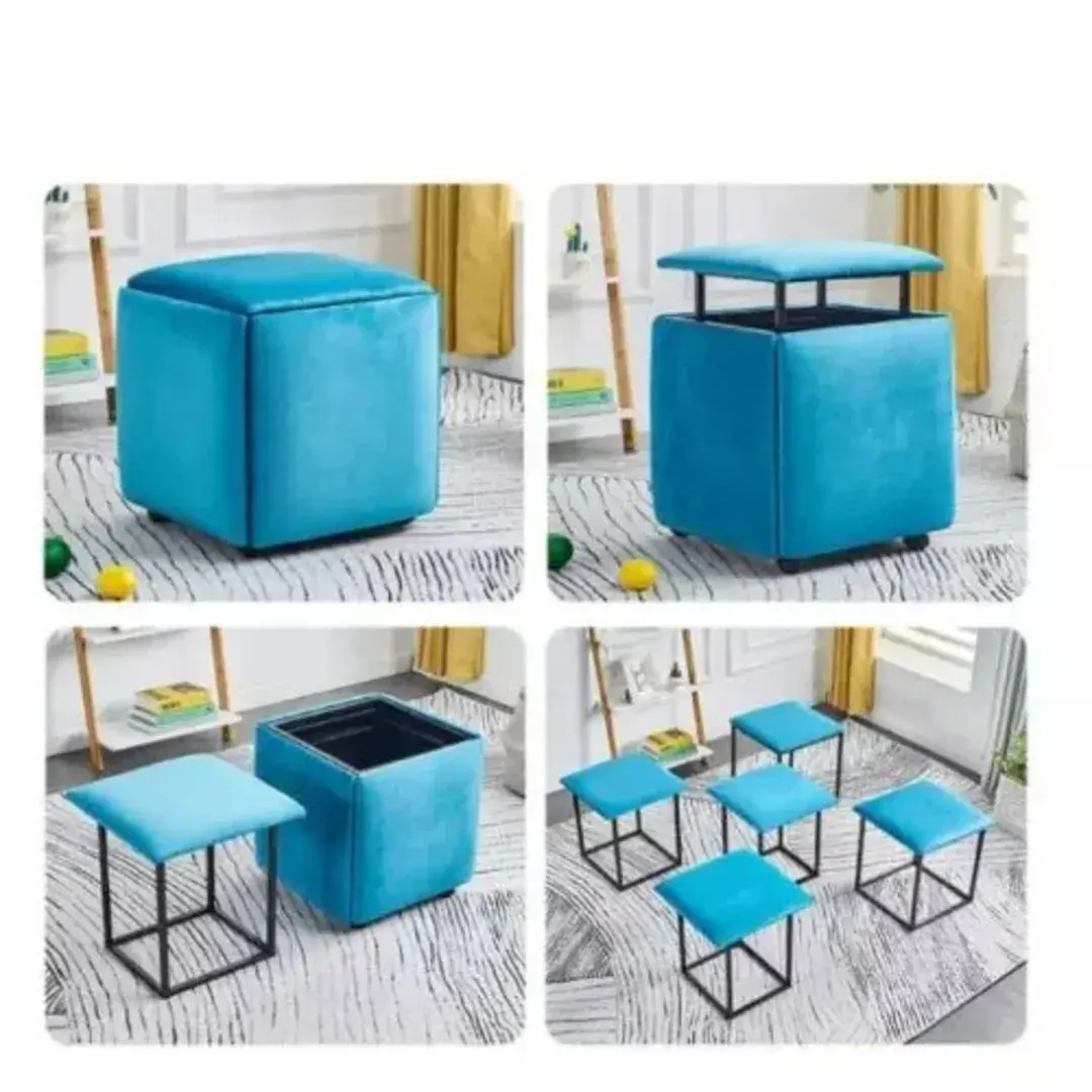 Stylish storage ottoman with 4 foldable stools inside—perfect for compact seating and space-saving design.