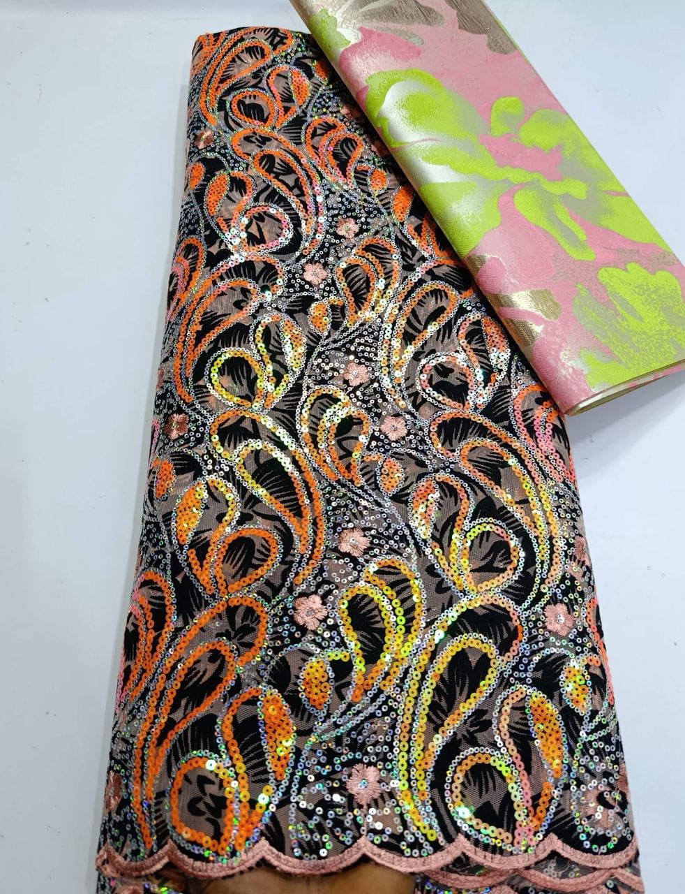 Illuminate your wardrobe with the Sunburst Bloom Sequin Lace, a fabric that radiates joy and sophistication. Designed with sunburst-inspired floral motifs and shimmering sequins, this lace captures the essence of celebration. Its vibrant detailing makes it ideal for weddings, festive gatherings, and high-fashion tailoring.