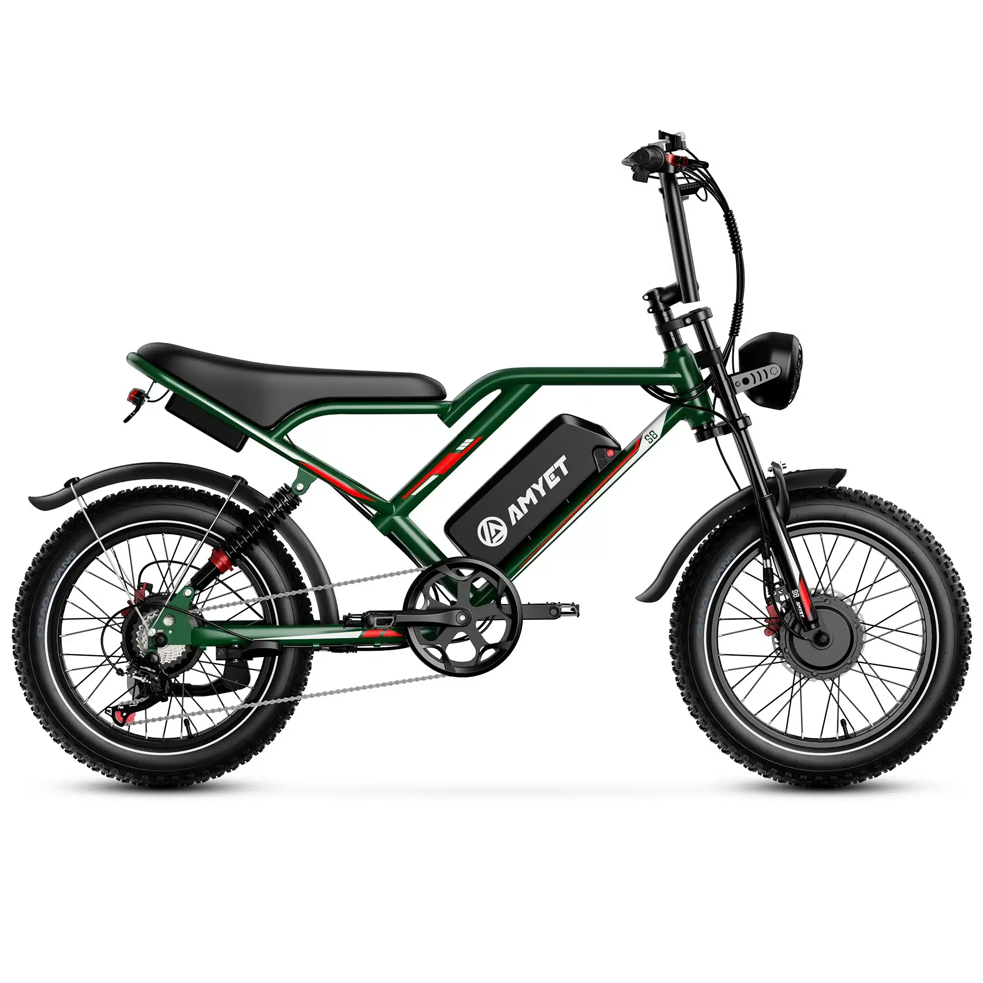 - Robust Suspension System: Features full suspension with a lockable fork and 20″ x 4.0″ fat tires for enhanced stability, traction, and a smooth ride on challenging off-road trails.