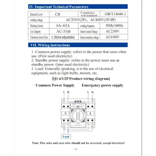 The dual power automatic switch (referred to as double power supply) is suitable for power supply systems with AC 50/60Hz, rated working voltage 230V, 400V and rated working current under 63A. Suitable for non-prolonged power outage, optional conversion between two power sources can be made according to demand. It can be set as manual of the mutual transfer between frequent-use and backup power supply, as circuit controlling switch of control, signal, and interlock functions. Some types of the product have communication ports to make it realisable of remote control and unattended substation to the user. It applies to residence community, hospital, mall, airport, etc.