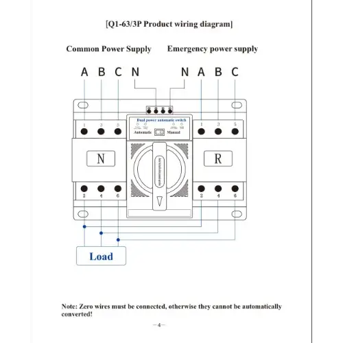 The ATSE Dual Power Automatic Transfer Switch is an intelligent device designed to ensure uninterrupted power supply by automatically switching between two power sources—typically the main utility and a backup generator or inverter. It continuously monitors the primary power source and, upon detecting a failure or abnormality (such as undervoltage or overvoltage), swiftly transfers the load to the backup source, ensuring minimal disruption. Once the primary source stabilizes, the switch can revert the load back, maintaining seamless power continuity.