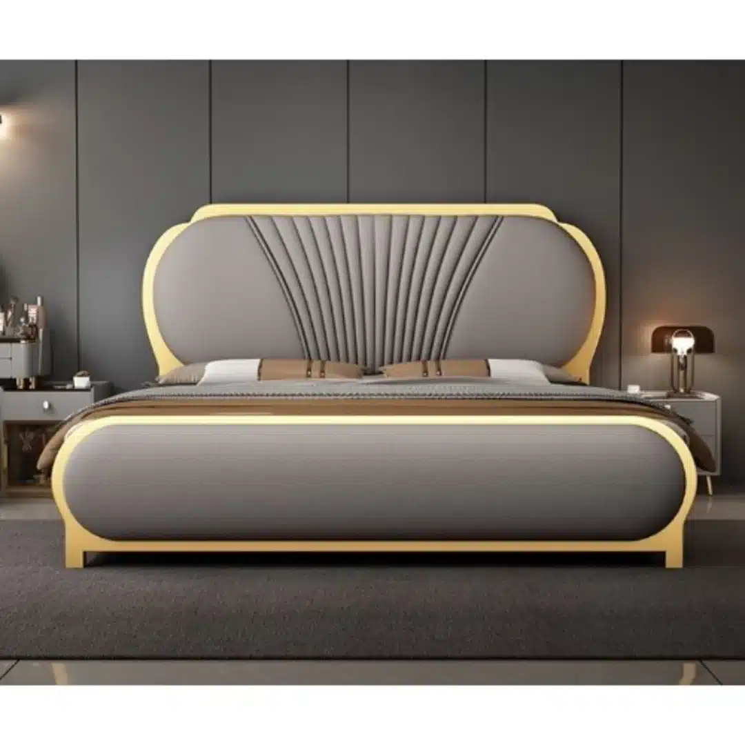 A tall headboard design, this bed frame looks amazing in any room setting. With its luxurious plush velvet fabric, this bed frame just oozes classes and with its chrome golden stripes , it provides the perfect view for aesthetic, balance and durability.