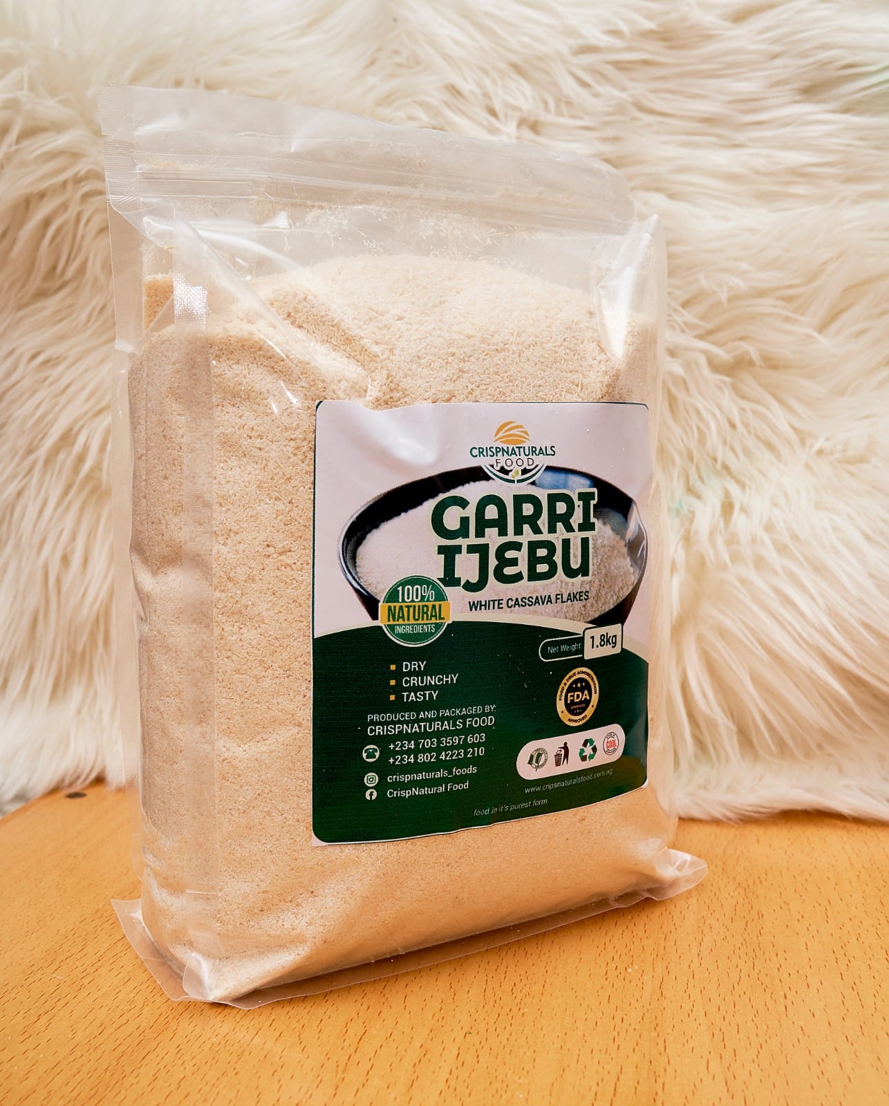 Perfect for soaking with milk, sugar, groundnut, or making a smooth, stretchy eba—this garri delivers consistent quality every time. Crip Natural Foods ensures a stone-free, hygienically processed product that meets high food safety standards.