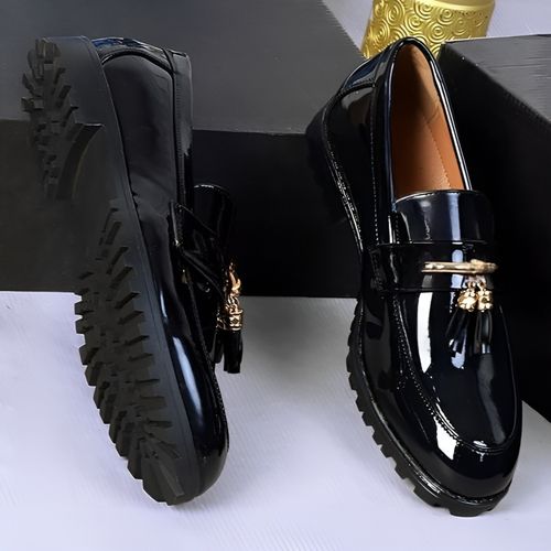 Depally designer shoes in elegant black, featuring a striking iron chain tie detail for a modern and sophisticated touch. Crafted for style and comfort, perfect for formal events, corporate wear, and special occasions.