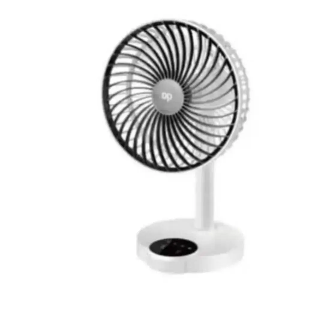 Compact and stylish dual-function device combining a table fan with built-in LED lighting. Rechargeable design makes it perfect for travel, office desks, or power outages. Offers cooling breeze and ambient light in one portable unit.