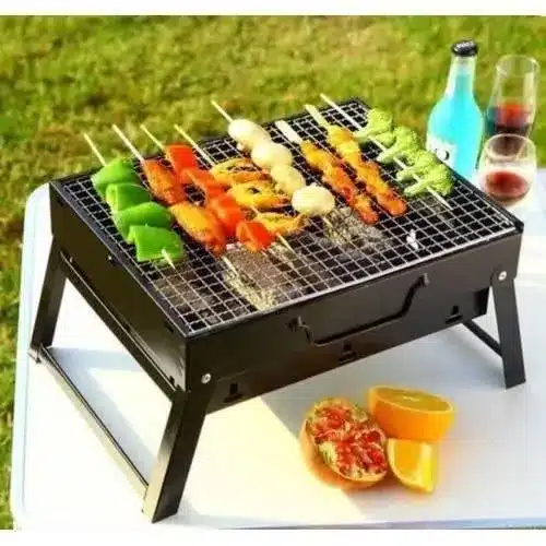 Foldable Charcoal Grill A compact and portable BBQ solution designed for outdoor cooking adventures. Built from durable stainless steel or carbon steel, it folds flat like a briefcase for easy transport and storage. Ideal for camping, picnics, tailgating, and backyard grilling, it features efficient ventilation, quick setup, and a spacious cooking surface that can handle up to 12 burgers at once. Some models include extras like skewers, grill lifters, and travel bags for added convenience.