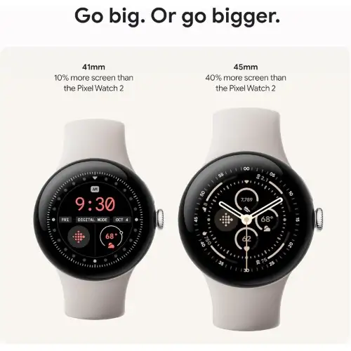 - The Google Pixel Watch 3 is designed for performance, with advanced fitness from Fitbit; the 41mm screen is twice as bright and 10% larger than before, making it easier to see your stats and info