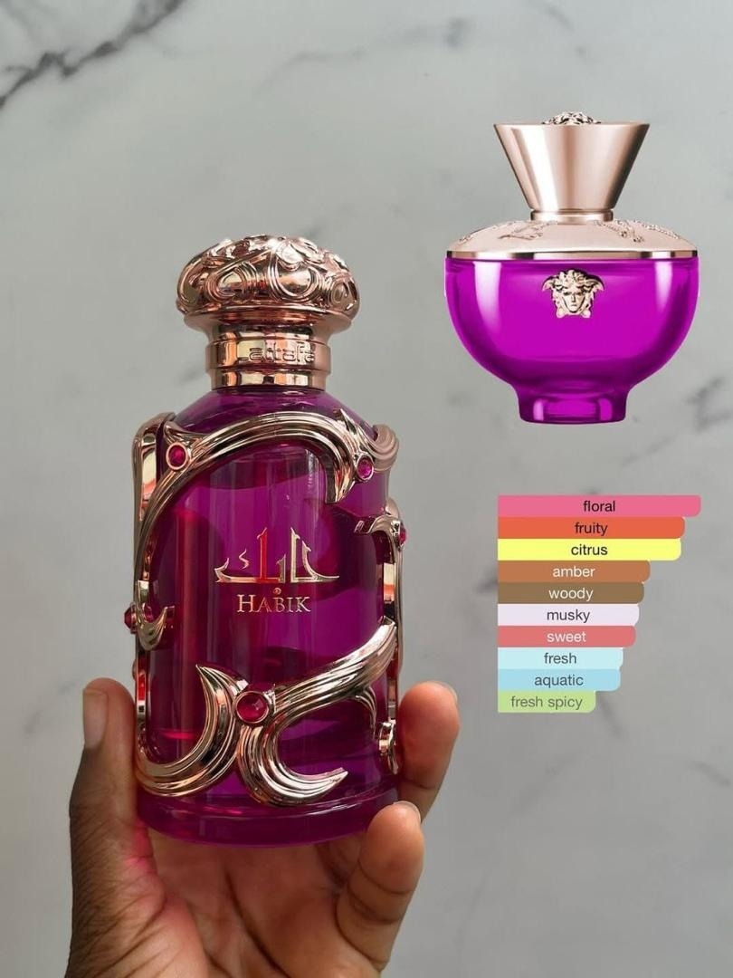Habik For Women by Lattafa Perfumes is a Floral Fruity fragrance for women. This is a new fragrance. Habik For Women was launched in 2025. Top notes are Pear and Bergamot; middle notes are Lily of the Valley, Jasmine and Freesia; base notes are Musk, Amber and Oakmoss