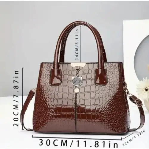 Elegant and versatile, this Leather Brown Iconic Handbag features a timeless design crafted from premium faux leather. It includes a spacious main compartment, secure zipper closure, and sturdy top handles—perfect for everyday use or formal outings.