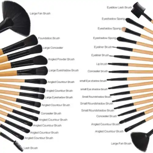 32-piece makeup brush set with soft, high-quality bristles, perfect for applying foundation, eyeshadow, contour, and more. Comes with a stylish and durable PU leather storage pouch for easy organization and portability. Great for both beginners and professionals.