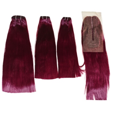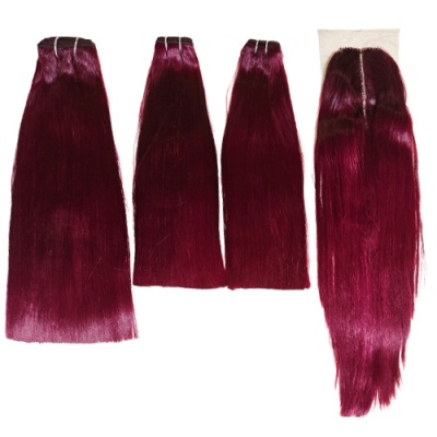 Noble Burgundy Double Drawn Straight Hair Bundle X Real Hair Extension With A Closure For Women
