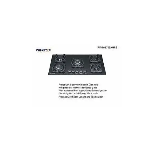 - Panel:BlackTEMPERED glass + stainless steel; with 5 burners;