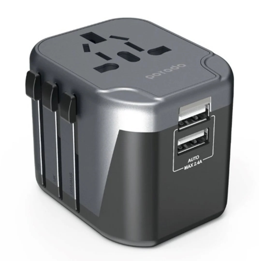 Porodo Universal Travel Charger 2.4a Dual Fuse Ac Output International Plugs