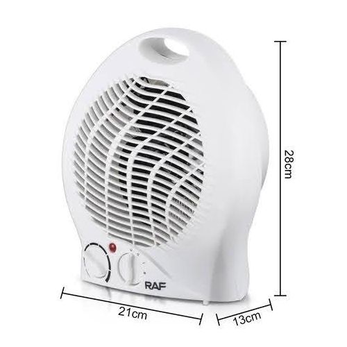 RAF Room Fan Heater (Model R.1184) is a compact and efficient 2000W heater ideal for small to medium-sized rooms. It features dual heat settings, a fan-only mode, adjustable thermostat, and built-in safety functions like overheat protection and tip-over shut-off. Lightweight and portable with a durable design, it’s perfect for quick and safe indoor heating.