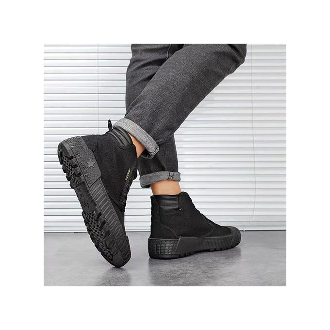 SXCHEN Men’s Military Tactical Boots — rugged and versatile training footwear designed for durability and comfort. Features a breathable cloth upper, reinforced support, and slip-resistant sole for outdoor missions, workouts, or everyday wear.