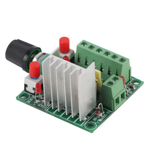 The speed of the motor can be controlled by adjusting the frequency of the potentiometer.